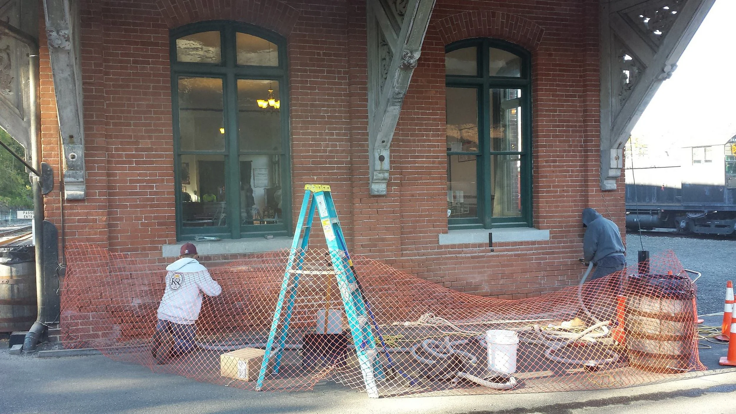 Masonry repair and restoration work on Thomaston Station’s north end in 2014.